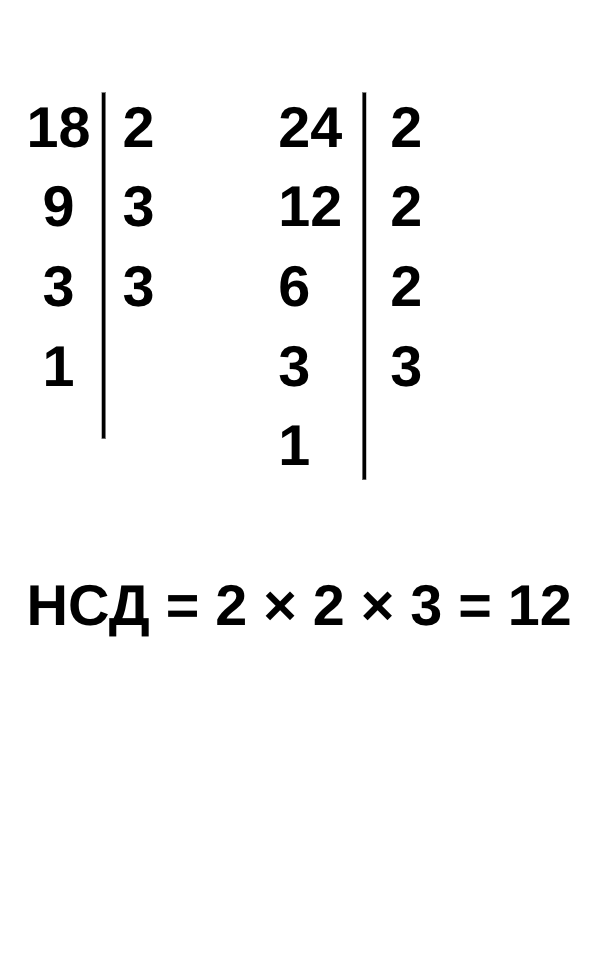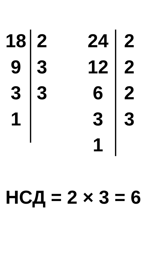 Обери правильний варіант знаходження НСД чисел 18 і 24
