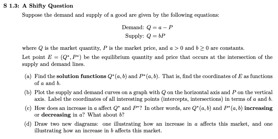 - Example: shifts in supply and demand curves, like you saw in Econ 1 or high school