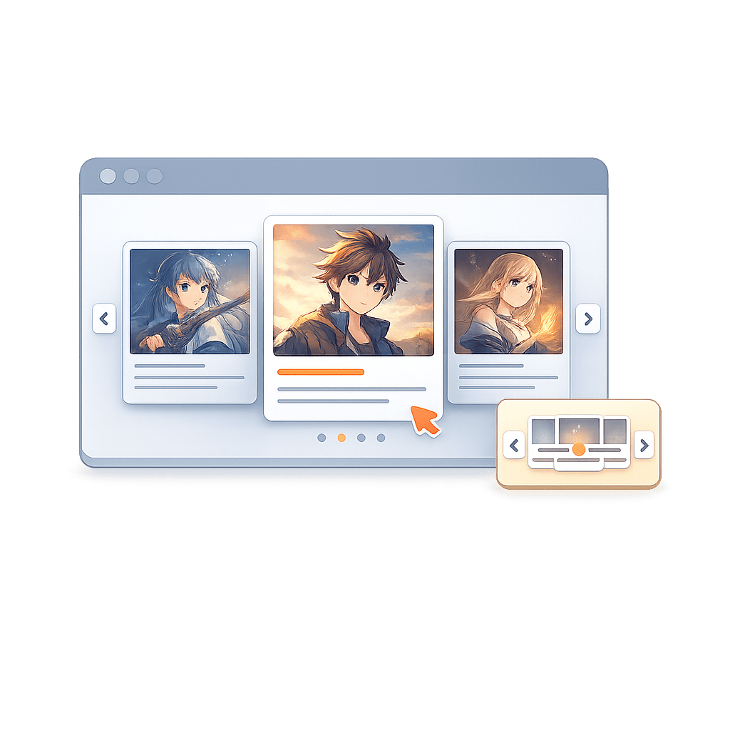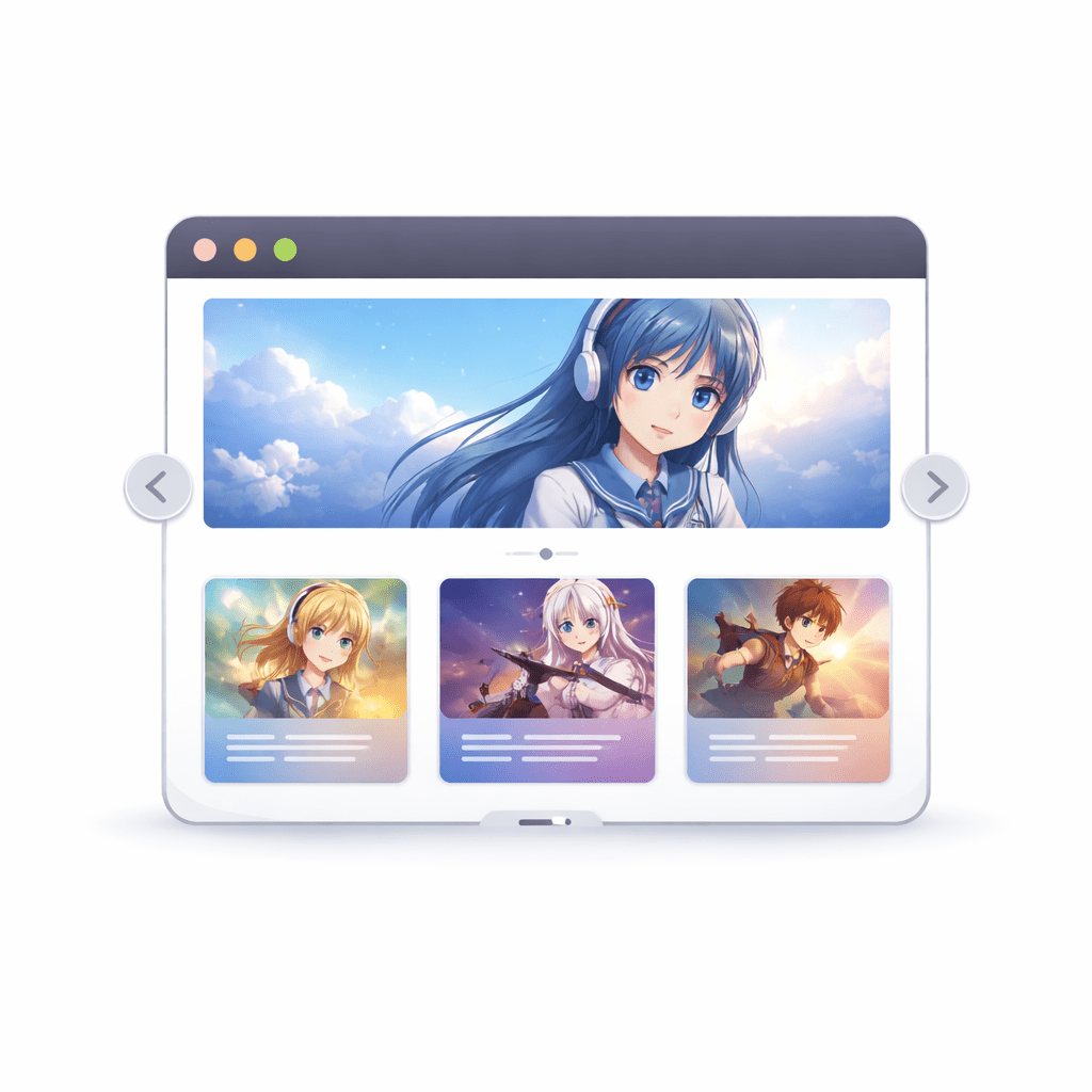 A rich display of anime content using stylish Bootstrap cards, coupled with an engaging carousel for enhanced visual appeal