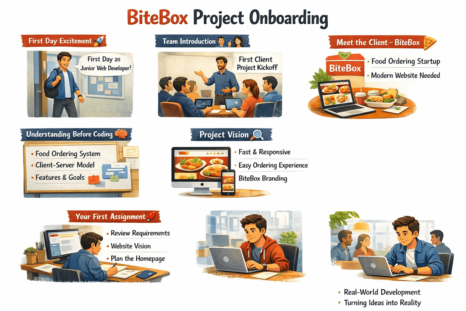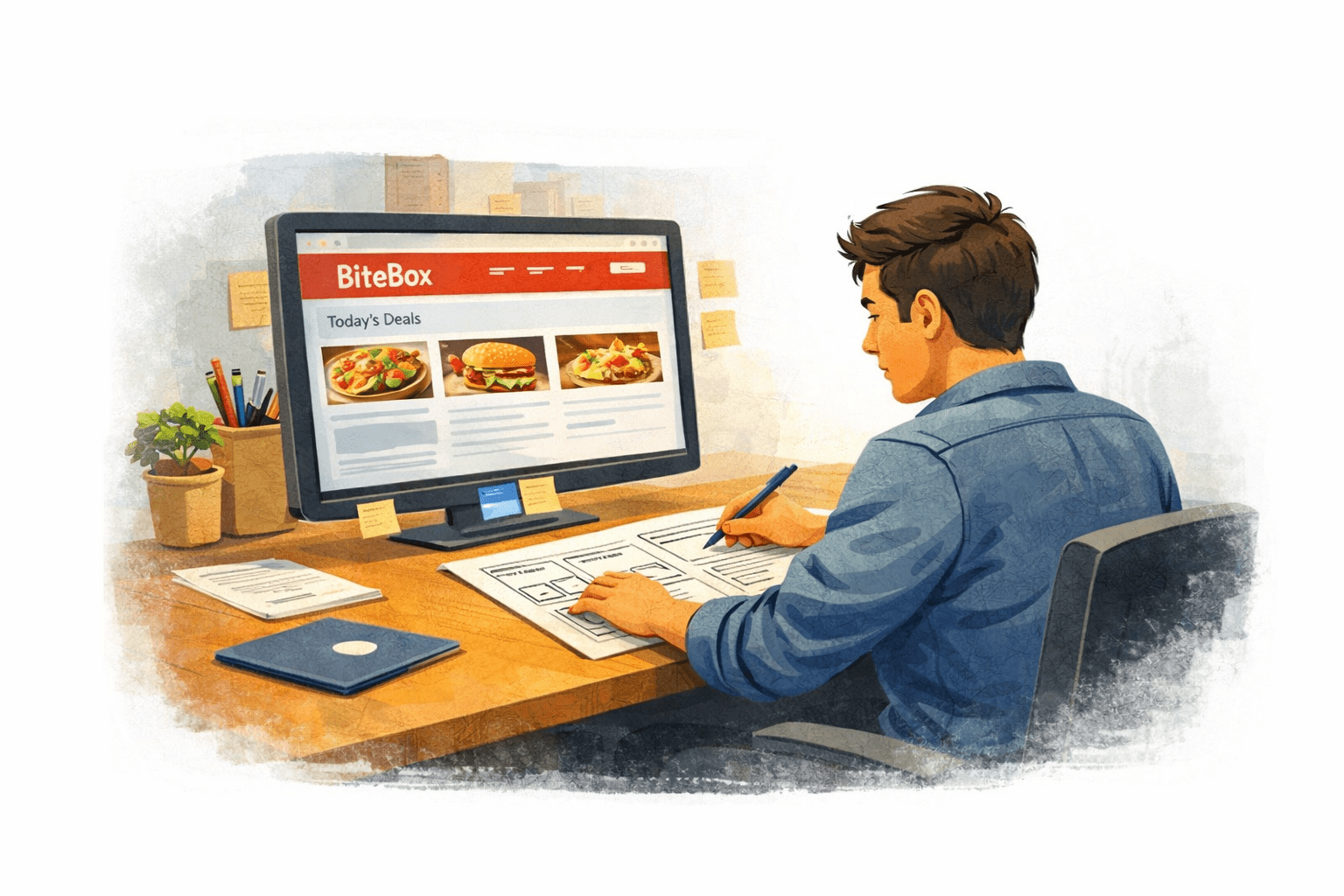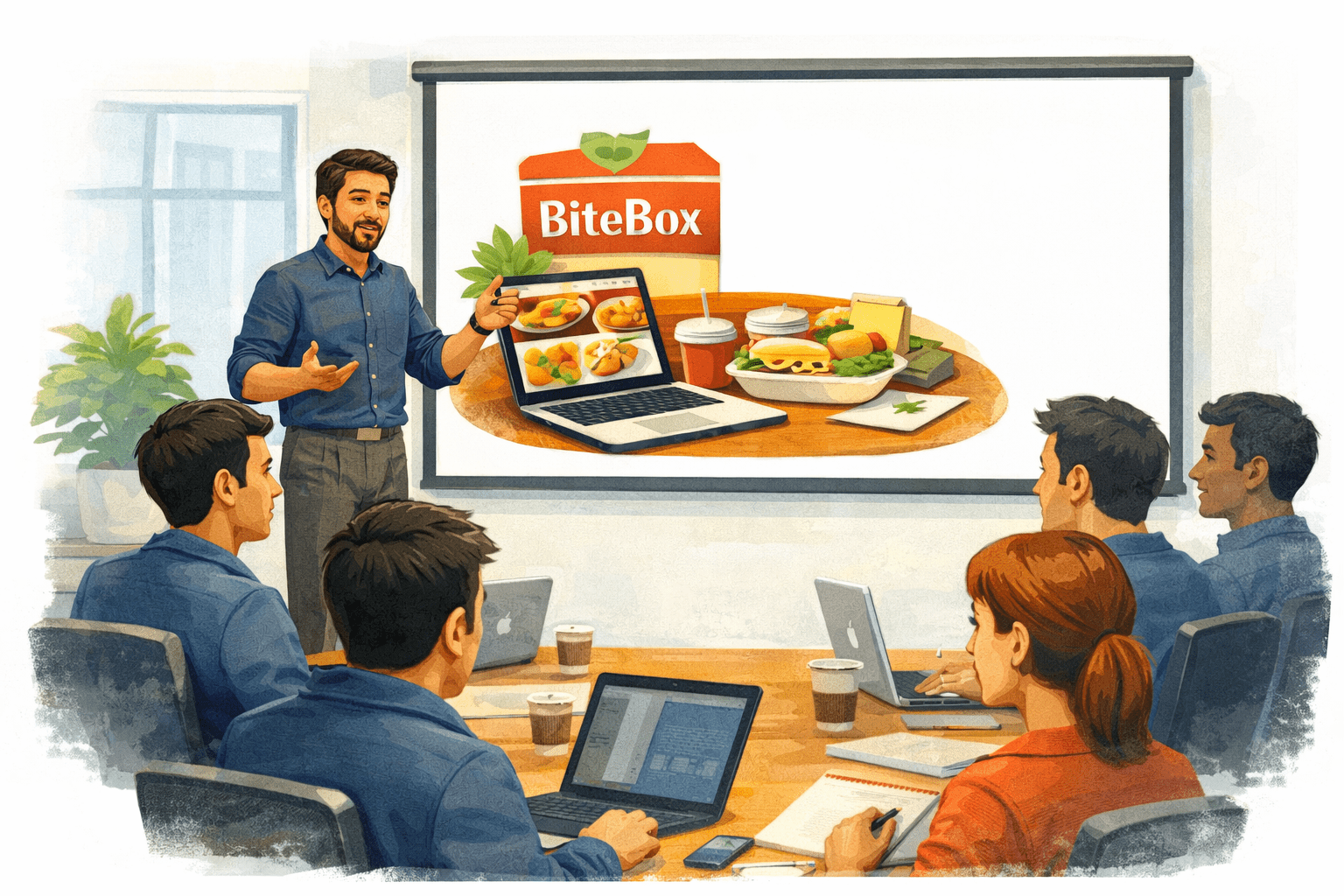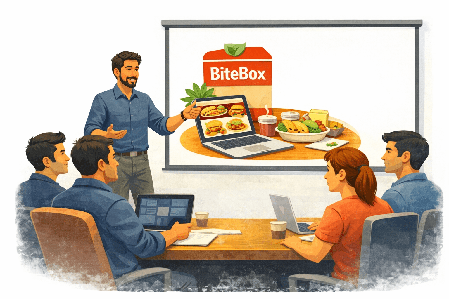 Client is BiteBox, A food ordering startup that wants a modern website for its platform