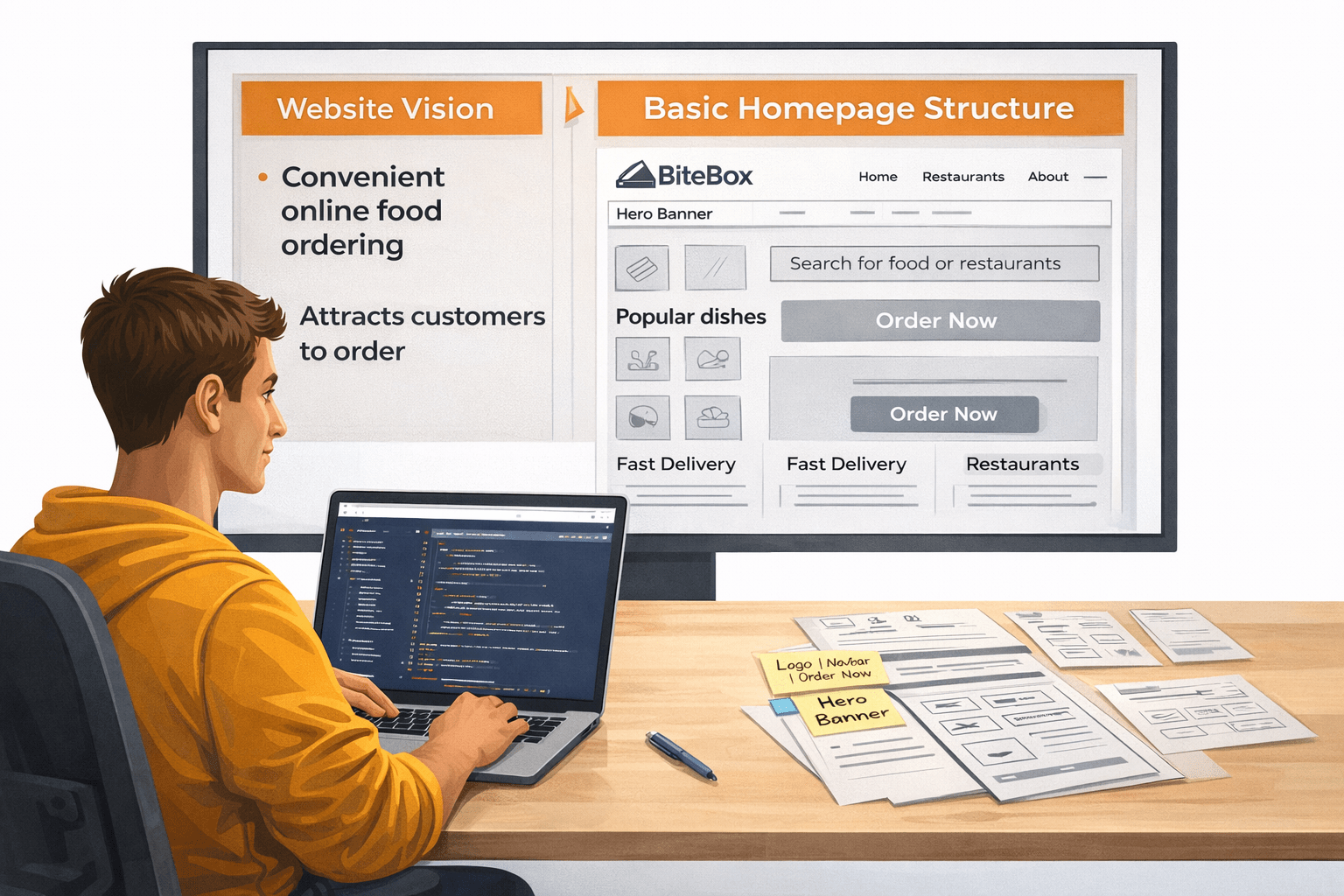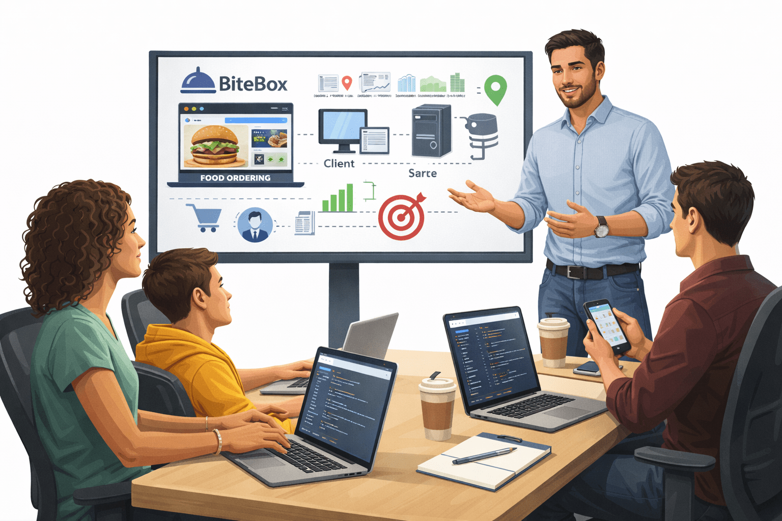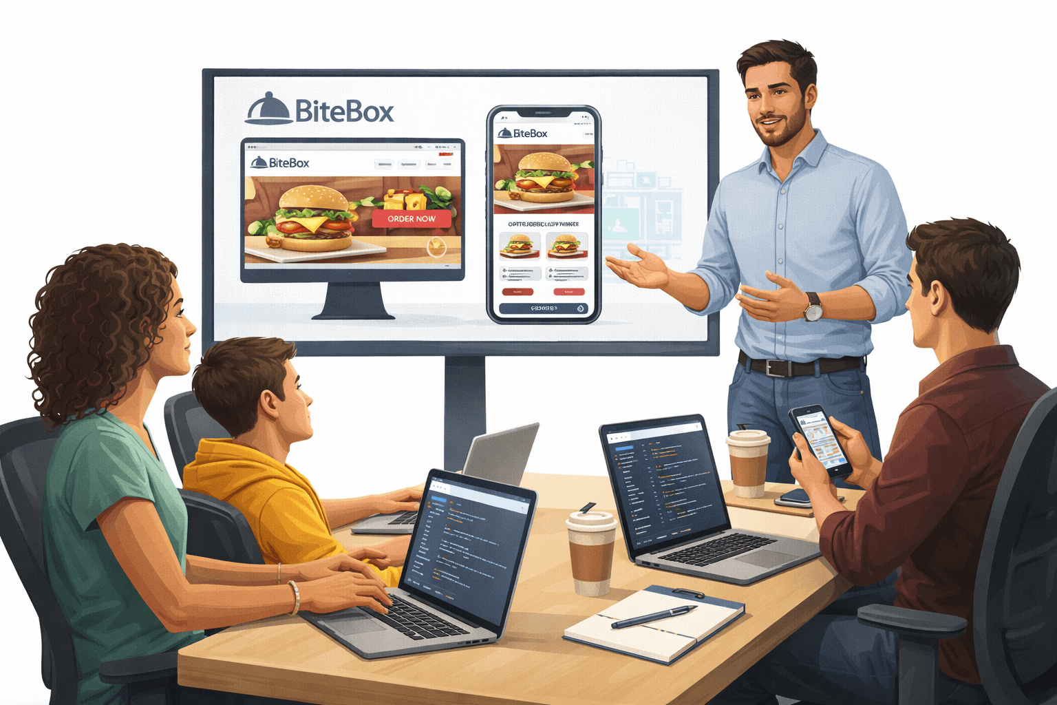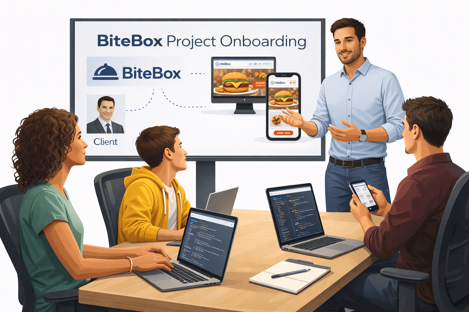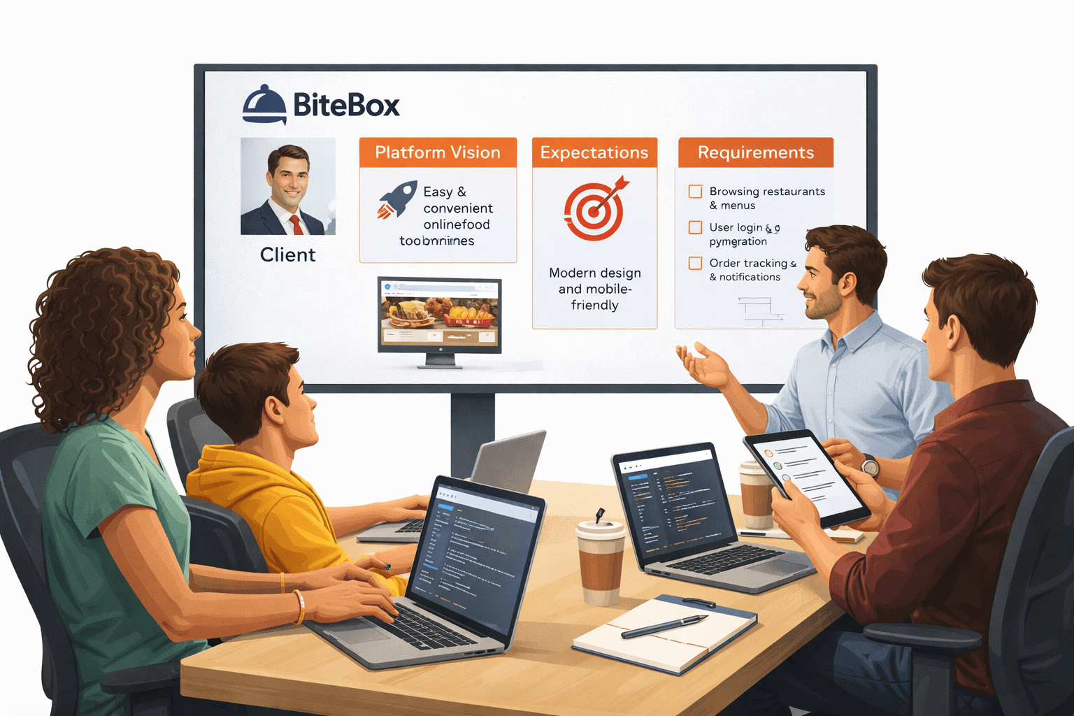 The client, BiteBox, is a food ordering startup planning to launch a modern website