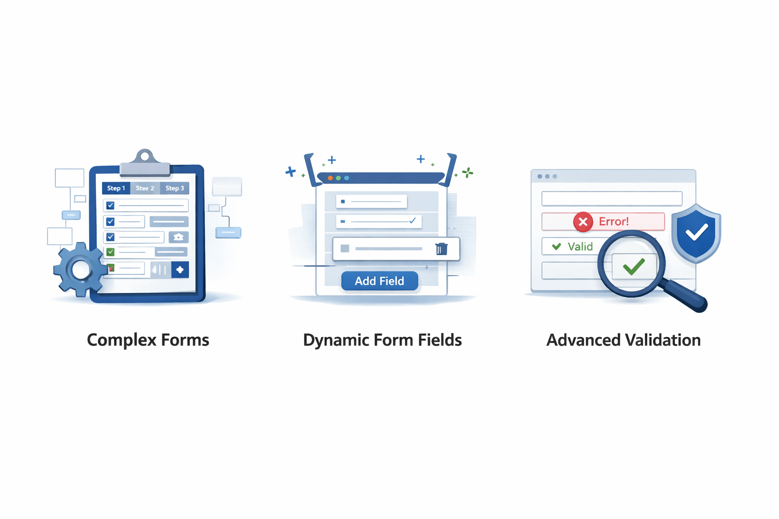 Custom validators handle complex rules