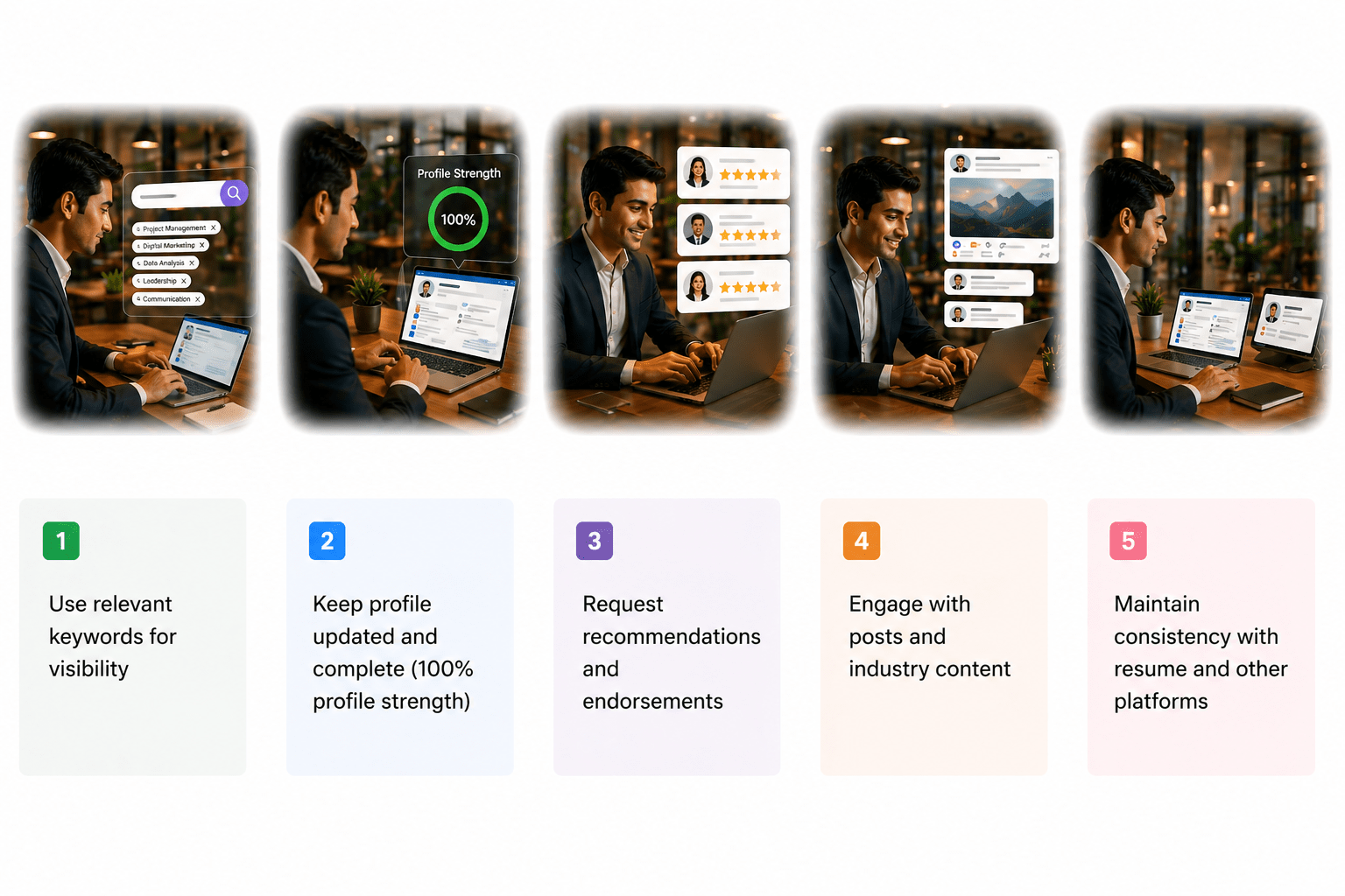2. Keep profile updated and complete (100% profile strength)