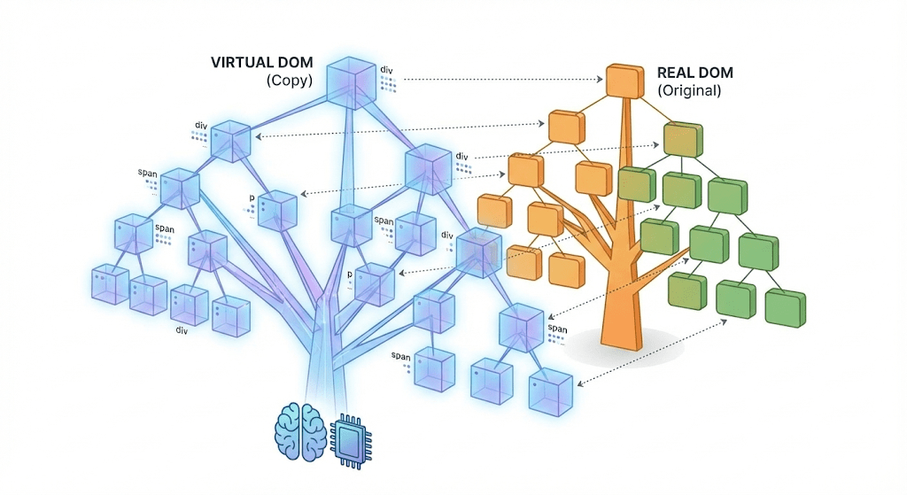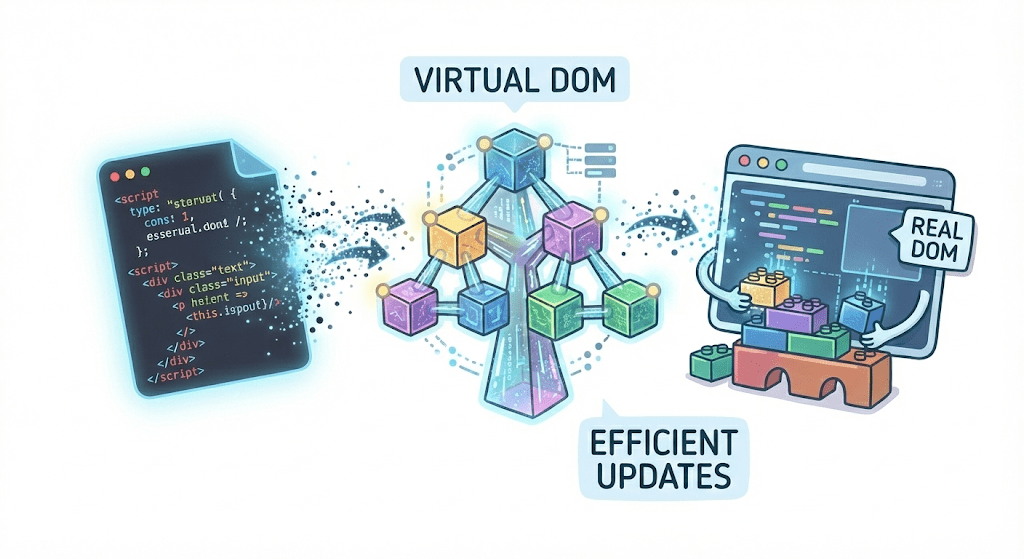 Virtual DOM → Efficient updates
