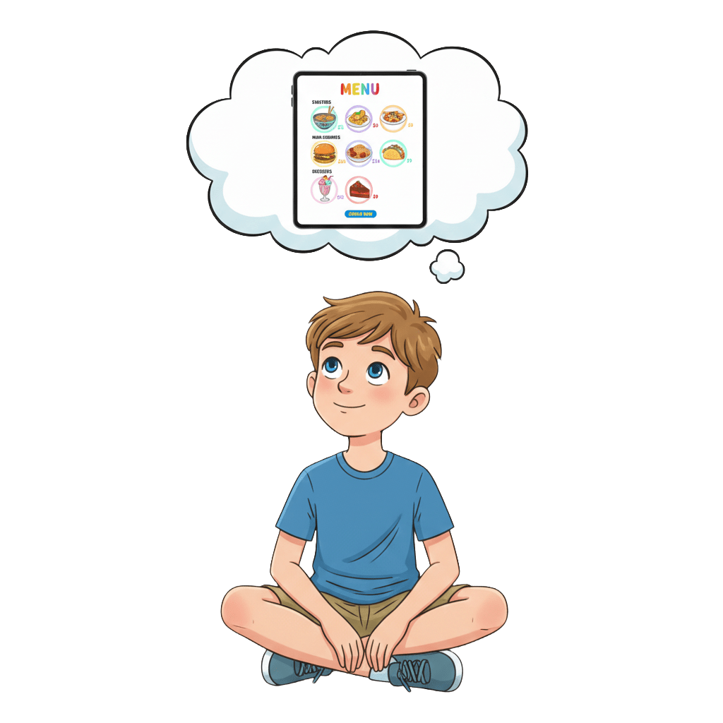 Imagine a restaurant menu displayed on a digital screen.