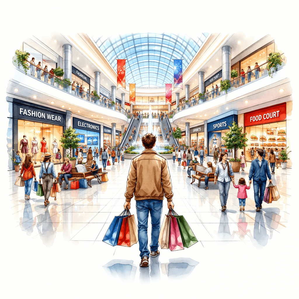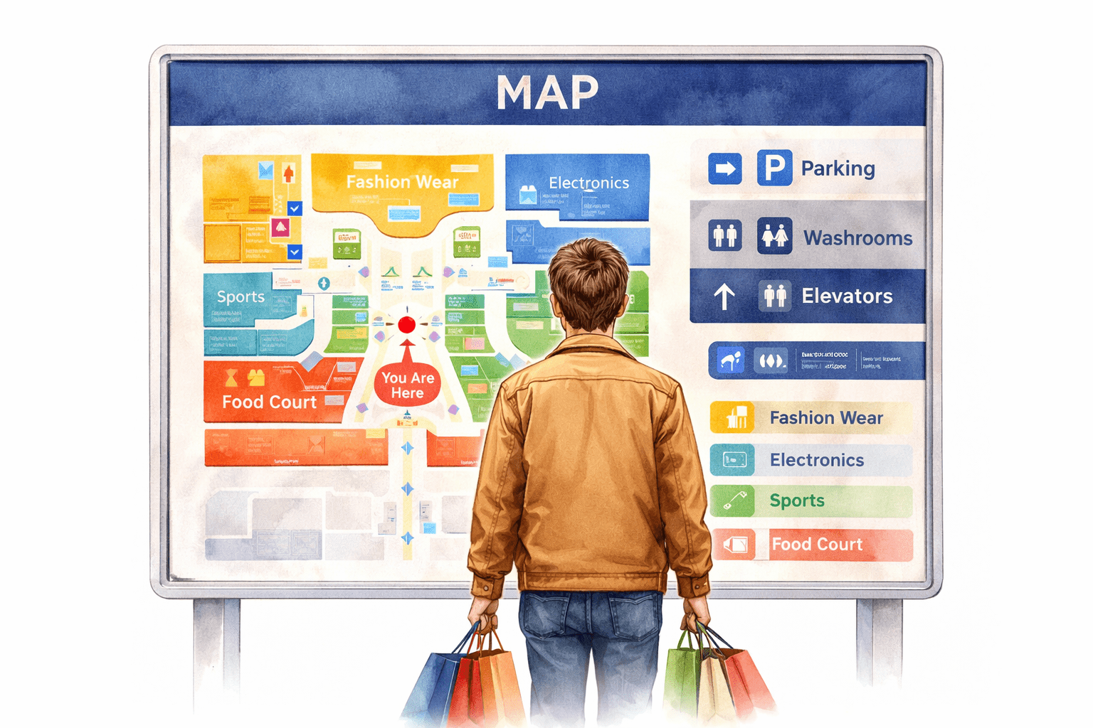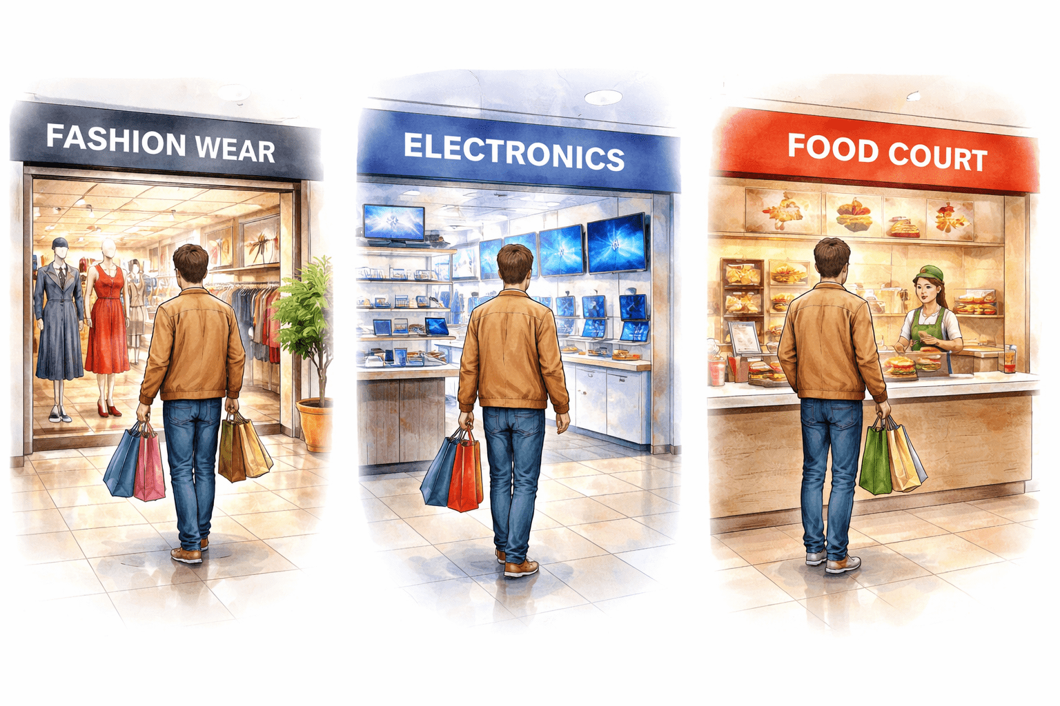 Imagine you walk into a huge shopping mall and it is divided into section: