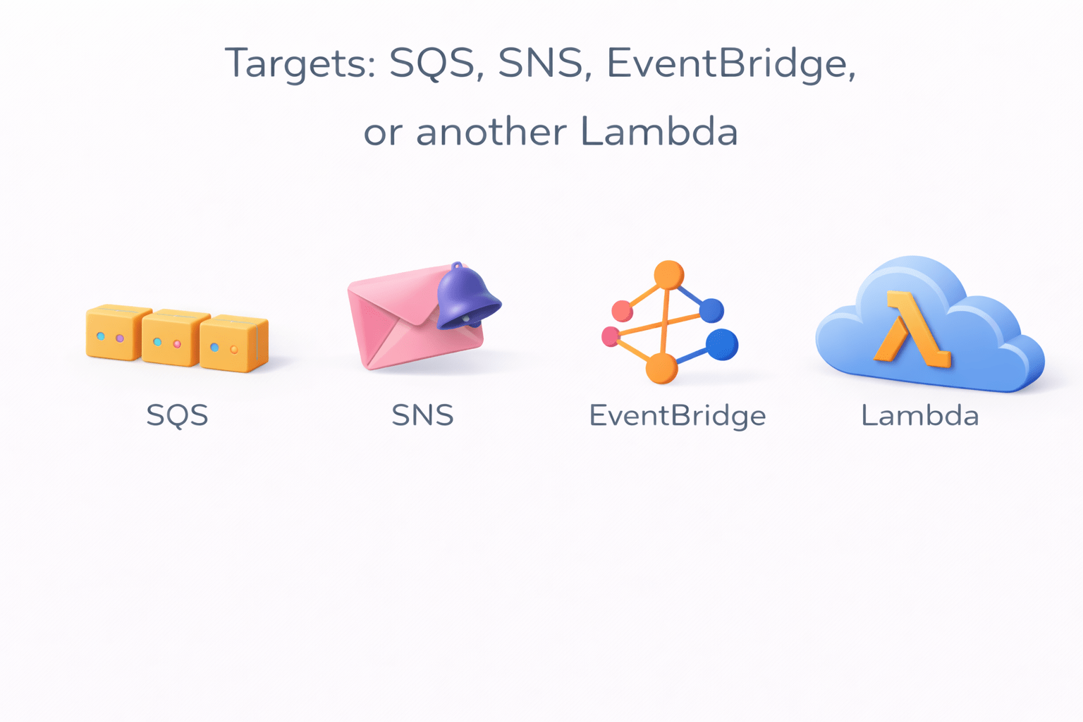 Targets: SQS, SNS, EventBridge, or another Lambda