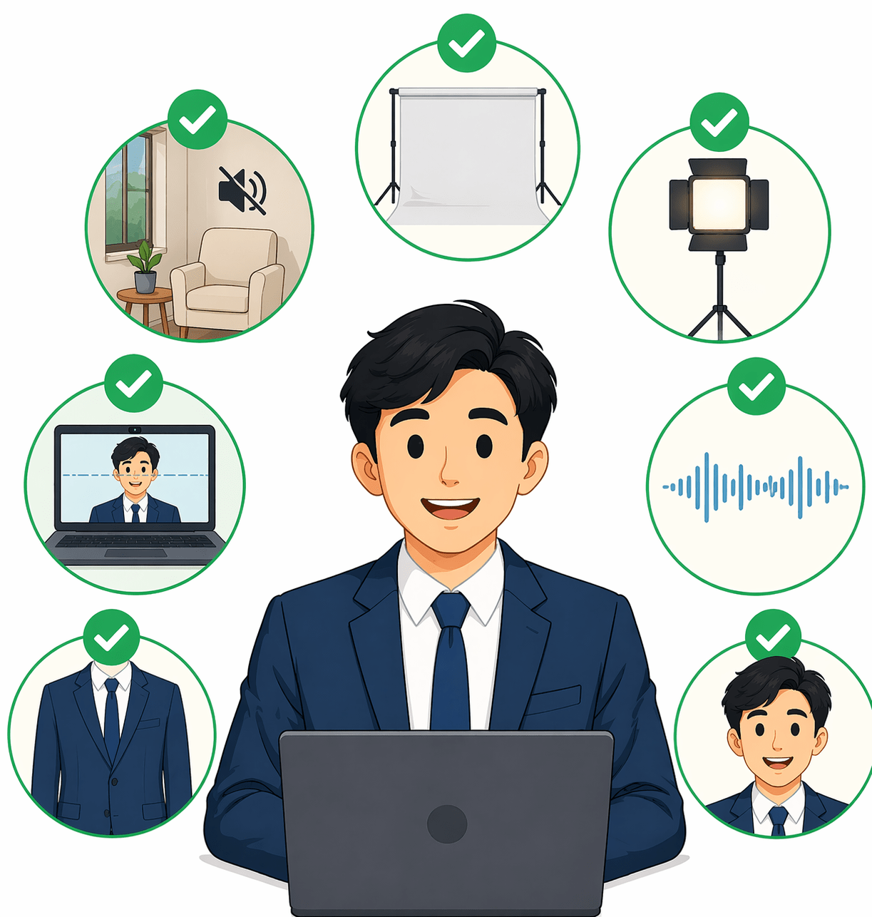 ✔ Front camera or laptop at eye level