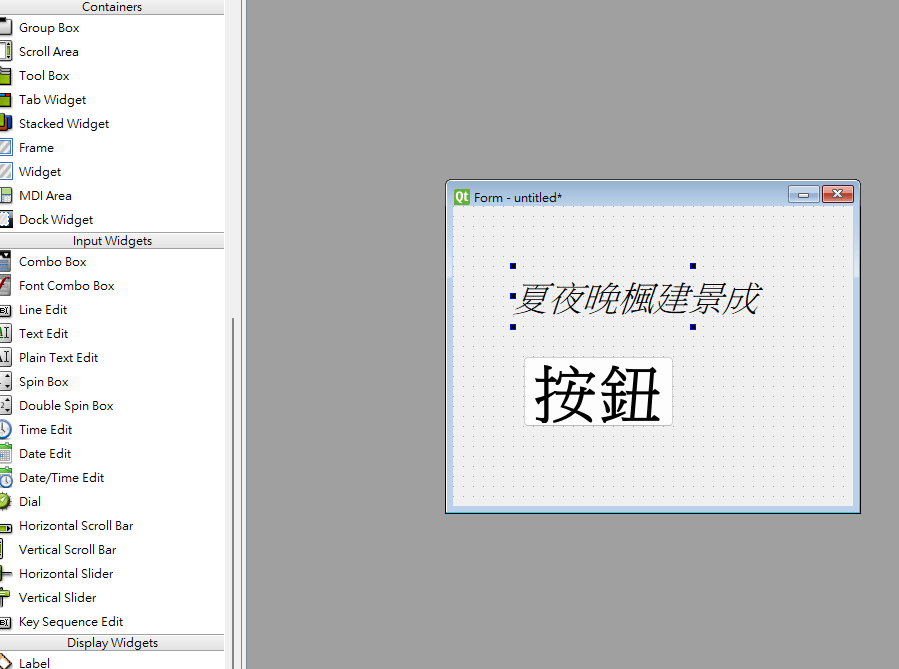label1.setText("夏夜晚楓建景成") # 設定標籤文字