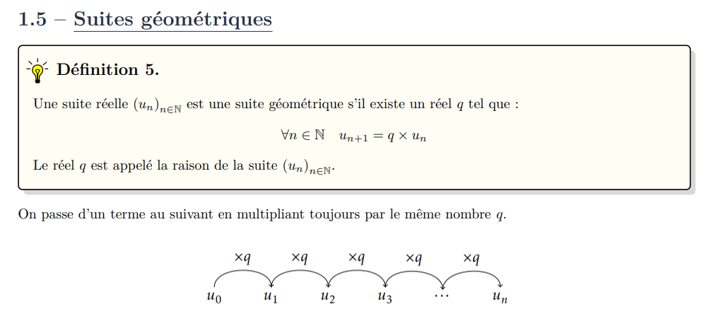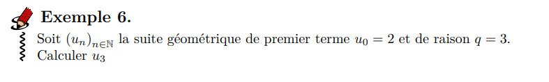 Soit \(\left(u_n\right)_{n \in \mathbb{N}}\) la suite géométrique de premier terme \(u_0=-3\) et de raison \(q=\dfrac{4}{5}\).