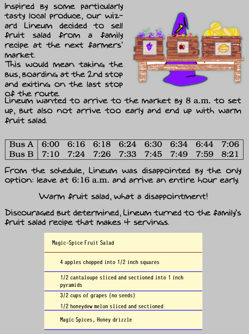 Bus schedules? Non-linear because combinations aren't informative for travel.