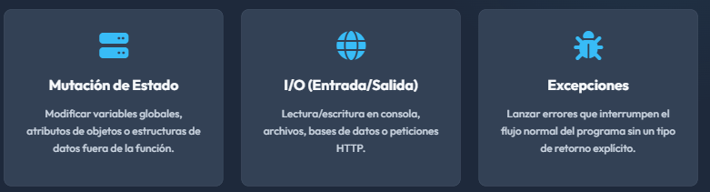 Programación funcional se basa en que las funciones no deberían tener efectos colaterales.