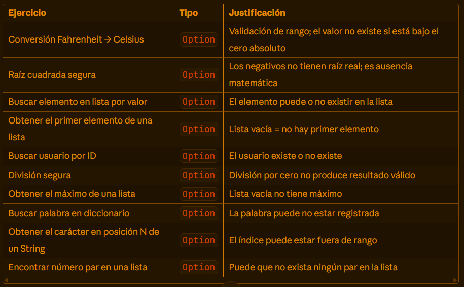 Si tiene la tentación de usar un valor nulo piense en Option
