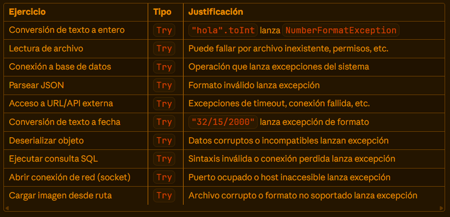 Utiliza Try si estás trabajando con operaciones que pueden lanzar excepciones.