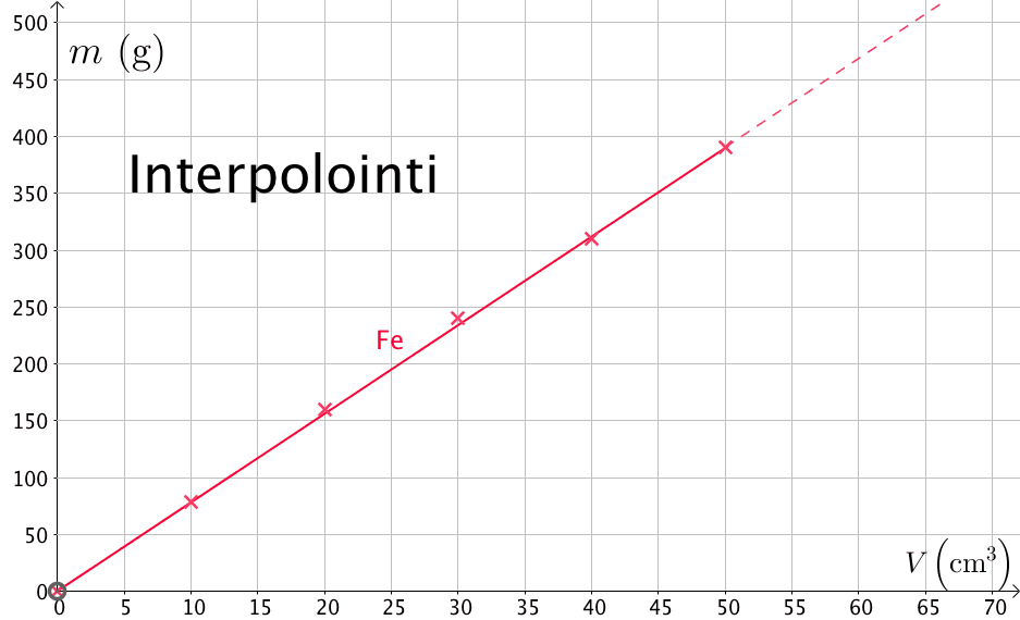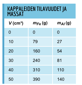 Tutkitaan raudan ja alumiinin massan riippuvuutta sen tilavuudesta.