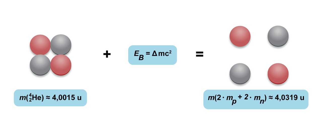 Laske kahden protonin ja kahden neutronin yhteenlaskettu massa. Vertaa tulosta alfahiukkasen eli heliumytimen massaan (kts. MAOL).