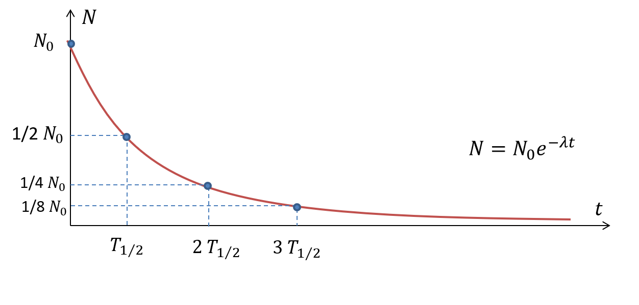 - Puoliintumisajan kuluessa puolet alkuperäisistä ytimistä on hajonnut