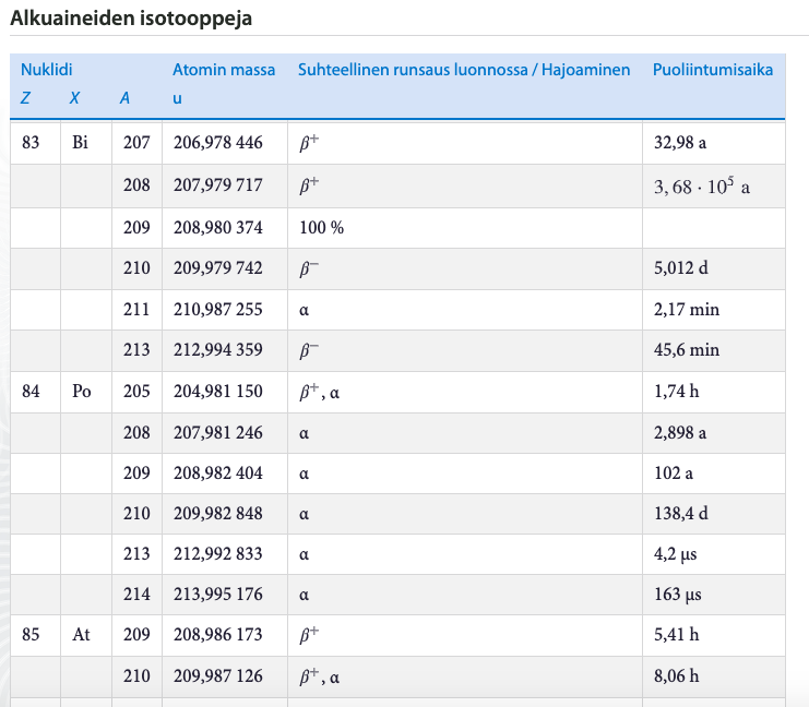 - Suurin osa isotoopeista on epävakaita