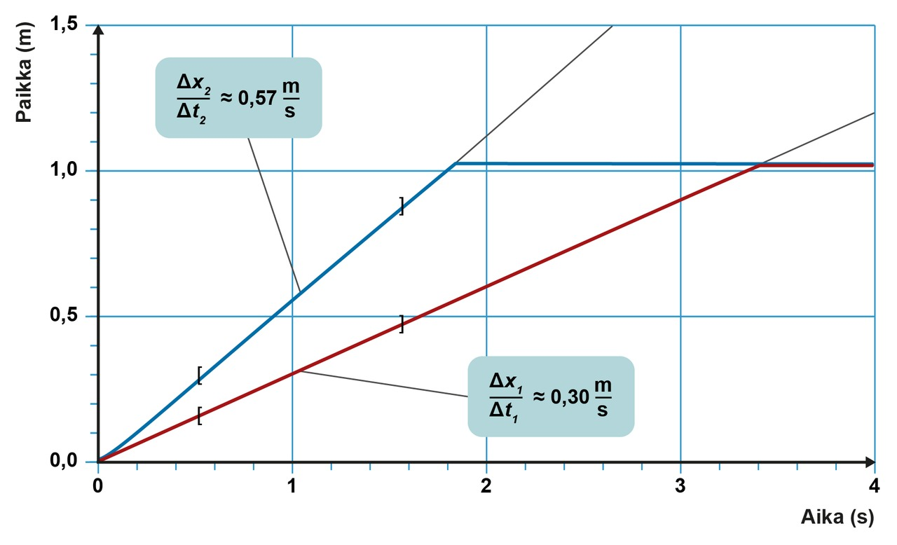- Fysikaalinen kulmakerroin määritetään graafisesta tasoituksesta (sovituksesta). Kulmakerrointa ei koskaan saa laskea suoraan mittauspisteiden avulla!