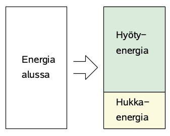 - Osa energiasta menee hukkaan (muuntuu ei-hyödylliseen muotoon)