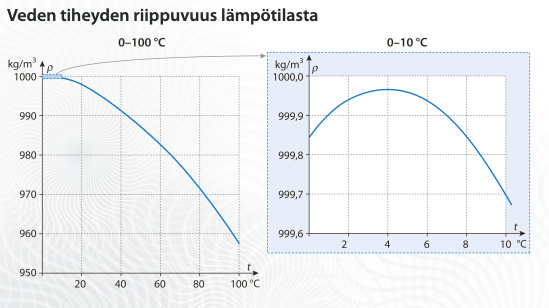 - Vesi sitoo energiaa hyvin eli sen ominaislämpökapasiteetti on varsin suuri