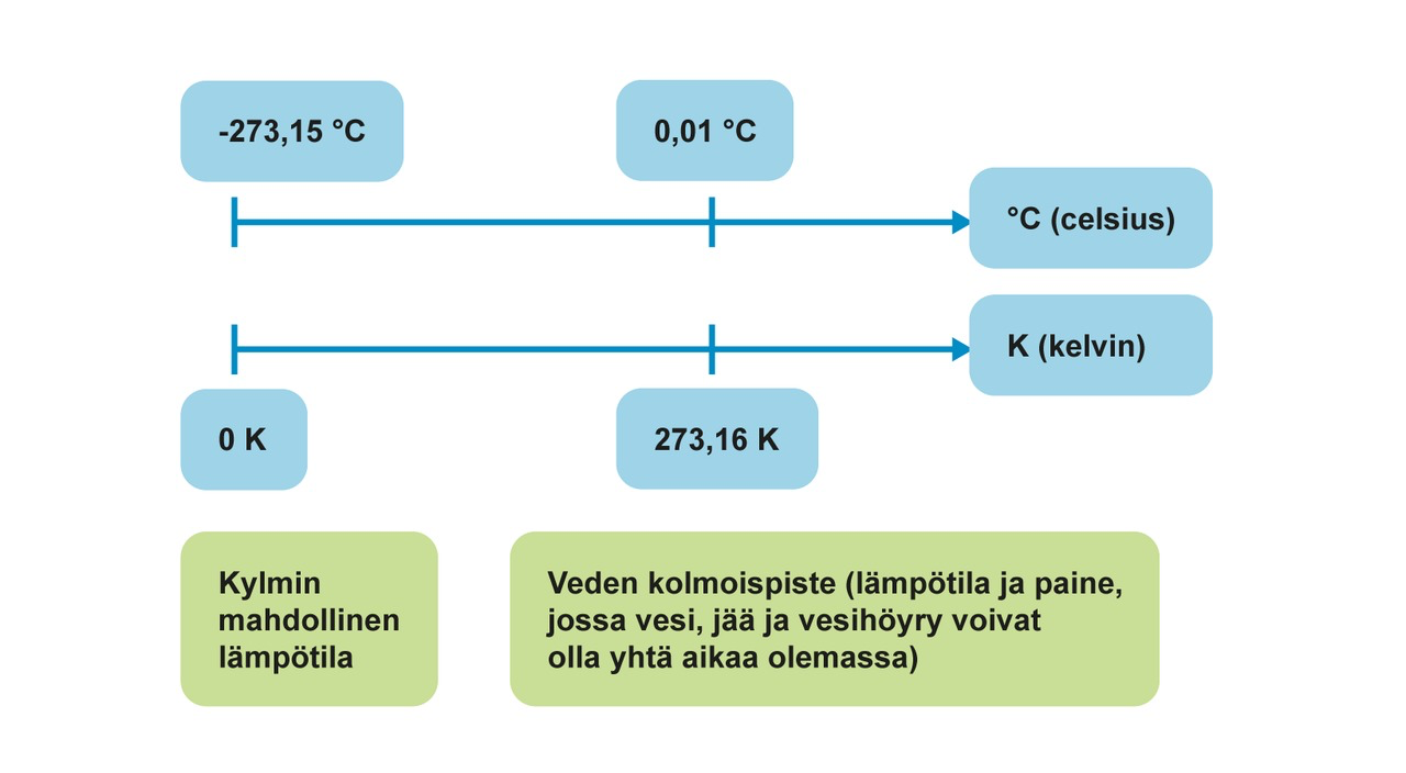 - Lämpötilan yksiköitä ovat celsius, kelvin, fahrenheit