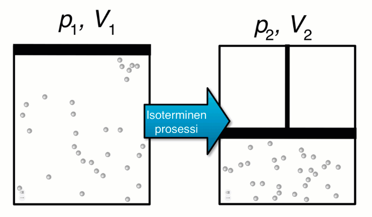 - Isotermisessä tilavuuden muutoksessa kaasun lämpötila ei muutu