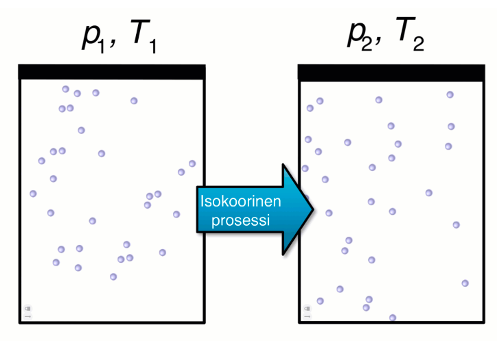 - Kun kaasua puristetaan hitaasti kasaan, kaasun lämpötila pysyy vakiona (isoterminen prosessi: pV = vakio)