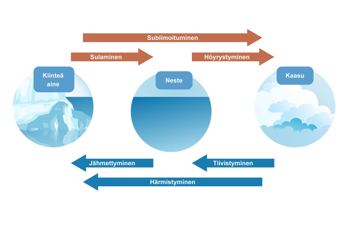 - Lämpenemiseen tarvitaan energiaa, kun taas jäähtymisessä vapautuu energiaa