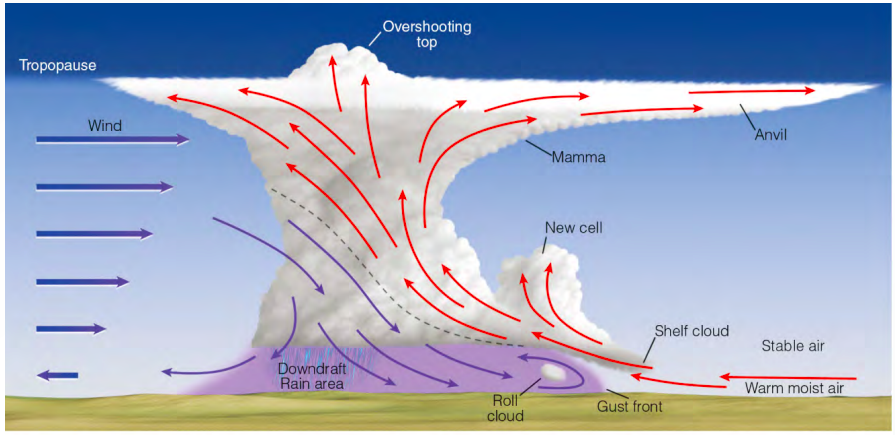 - Supersolun pilvenlaajuinen kiertoliike (laskuvirtaus) aikaansaa puuskarintaman, johon liittyy vaakasuoraa pyörteisyyttä