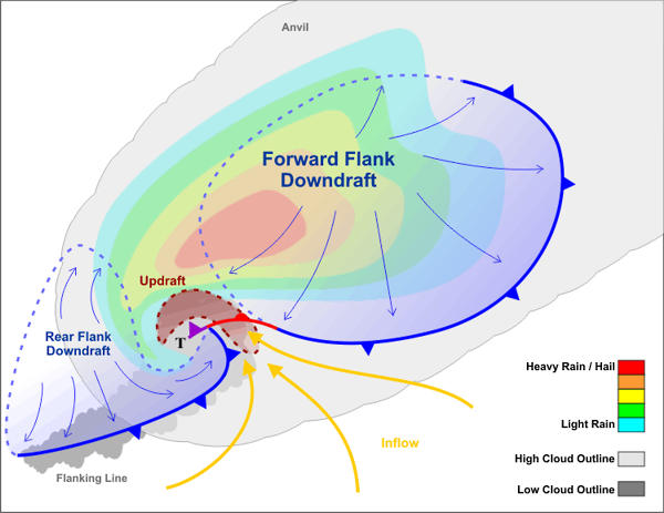 - Koostuu yhdestä jättiläismäisestä nousevien ja laskevien virtausten muodostamasta konvektiosolusta (+ mesosykloni)
