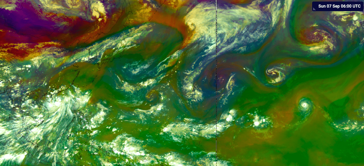 Ilmamassakuva Tyyneltä valtamereltä su 7.9. klo 6.00 UTC