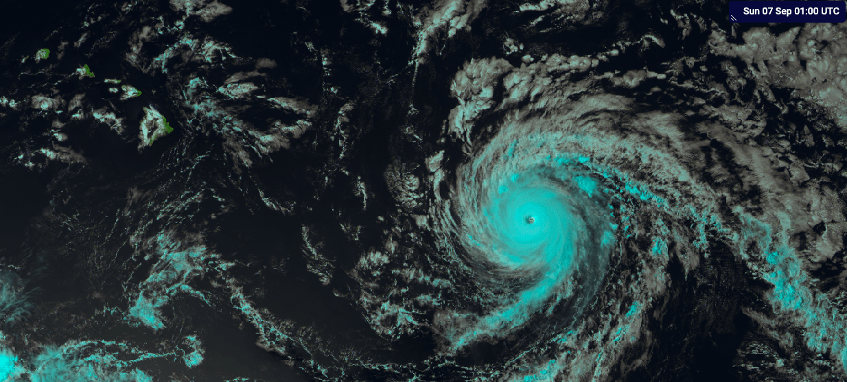 4. luokan hurrikaani Kiko Tyynellä valtamerellä su 7.9. klo 1.00 UTC