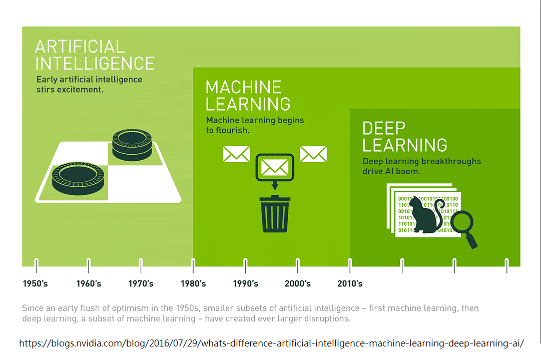機器學習 (Machine Learning, ML),1959 年被 IBM 員工 Arthur Samuel 提出,代表透過統計學,讓機器自己做學習,而並非用一條指令一個動作的方式,來製造人工智慧。