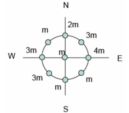 \text{Eight balls of different masses are placed along a circle as shown in Fig. 8 The net force on }