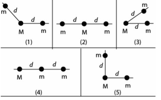 \text{other one has mass $M$. The configuration with the least (minimum) gravitational force }