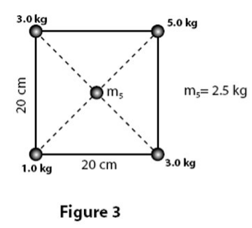 \text{Four point masses are at the corners of a square whose side is $20 \mathrm{~cm}$ long (see Fig 3).}