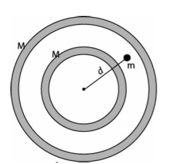 \text{Two uniform concentric spherical shells each of mass $M$ are shown in Fig. 11. The magnitude }