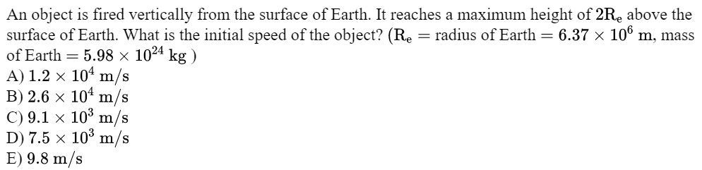 \text{An object is fired vertically upward from the surface of the Earth (Radius $=\mathrm{R})$ with an }