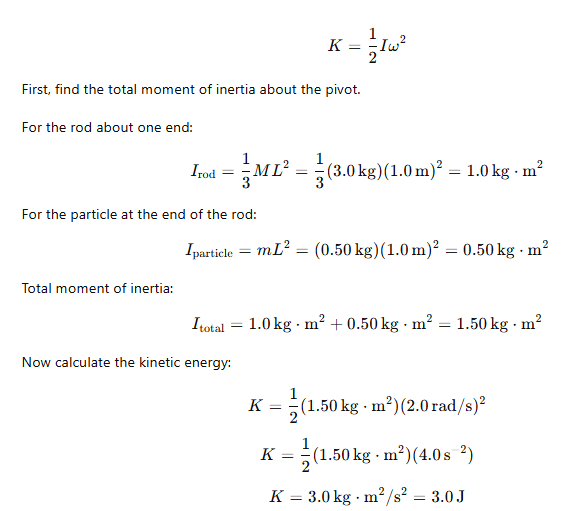 &\text{The rod and the particle are rotating around the other pivoted end of the rod with } 2.0~\text{rad/s.} \\
