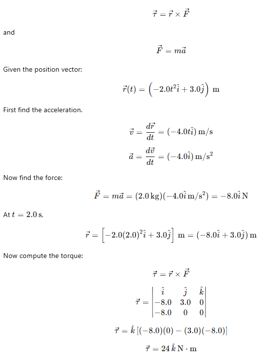 &\text{What is the torque (about the origin) acting on the particle at } t = 2.0~\text{s?} \\