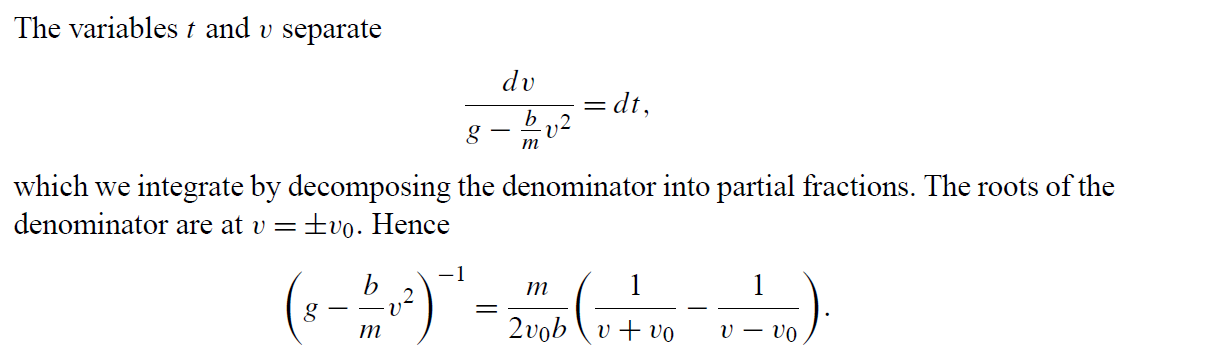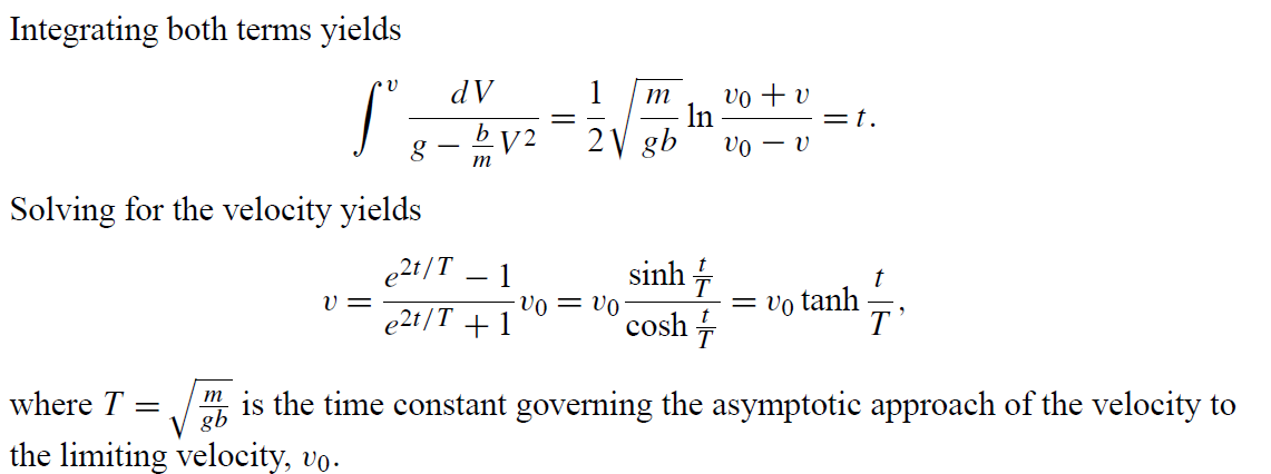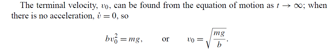 m \dot{v}=m g-b v^2