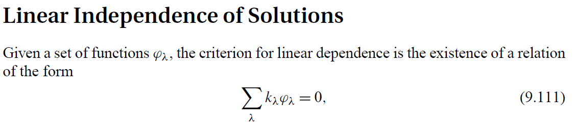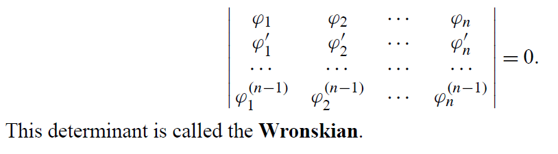 \text{The solutions of Eq.1 represent a cevtor space of dimension n. We need n \color{purple}{linearaly} }