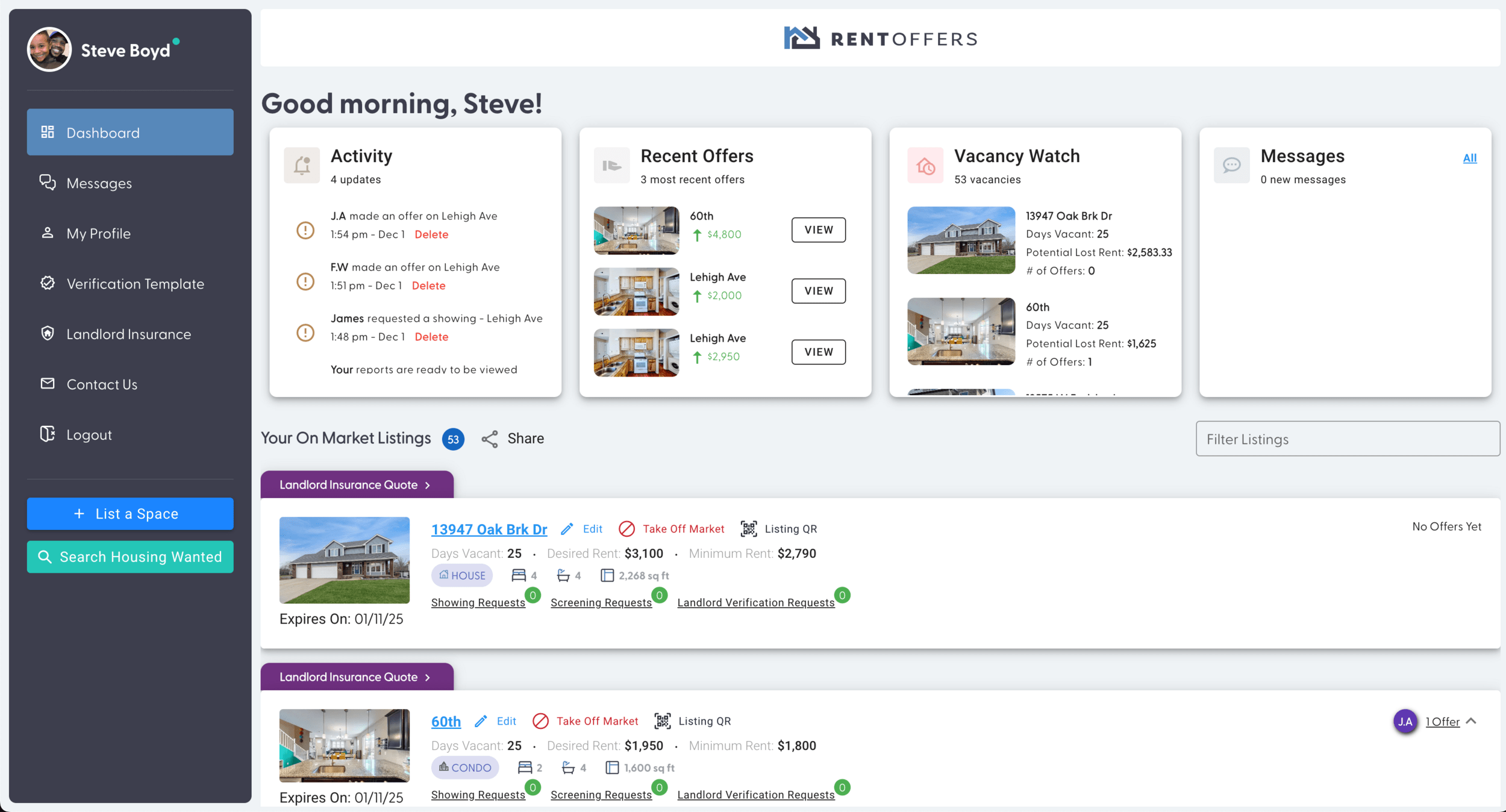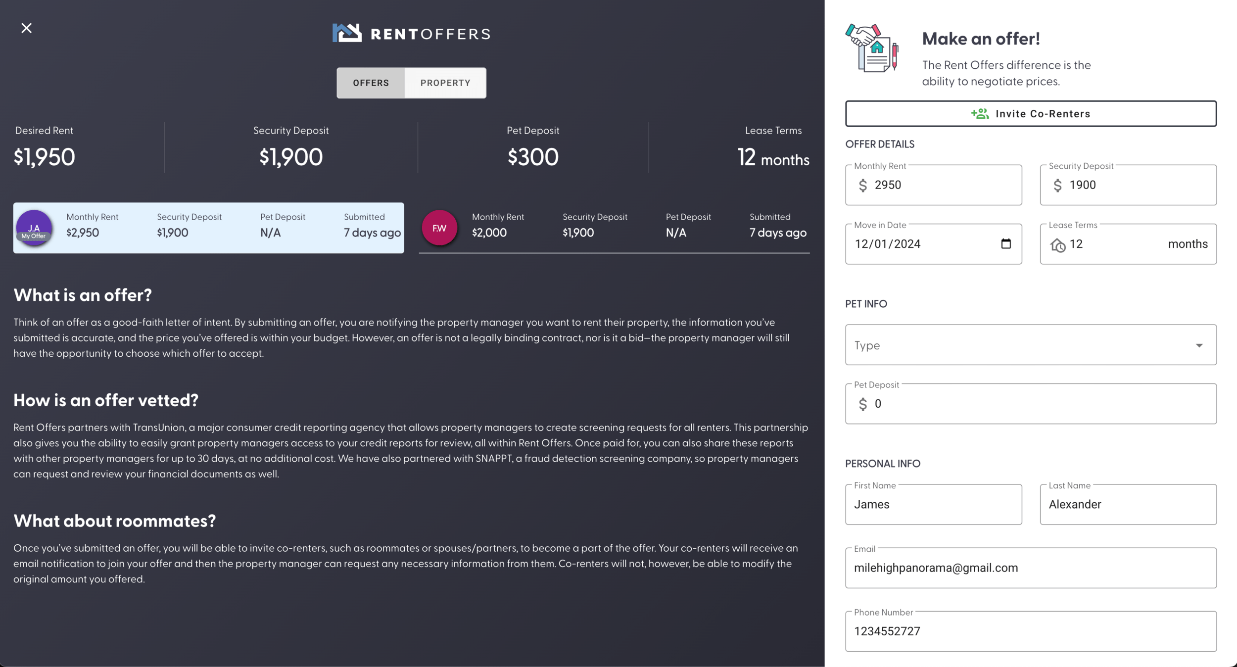 A platform where renters submit offers on rental properties, drastically reducing the duration of time on market, providing a transparent market place.