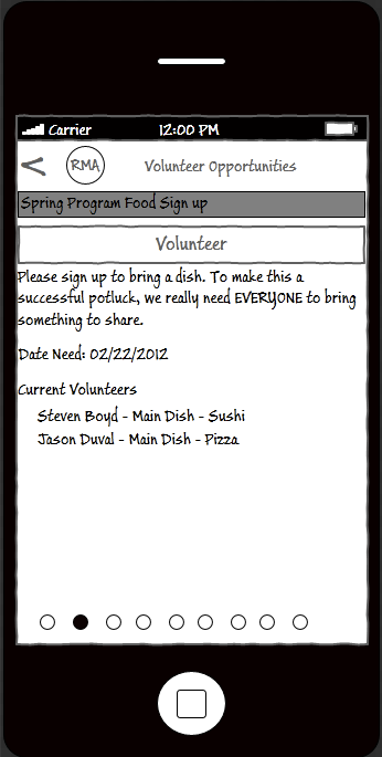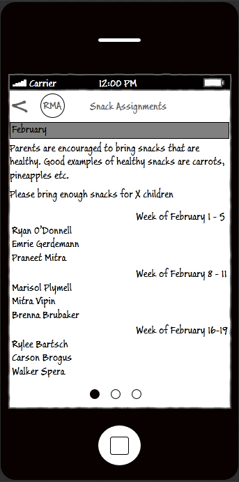 This screen can provide snack suggestions as well as display the assignments. Parents can also swipe to see the next two month's assignments.