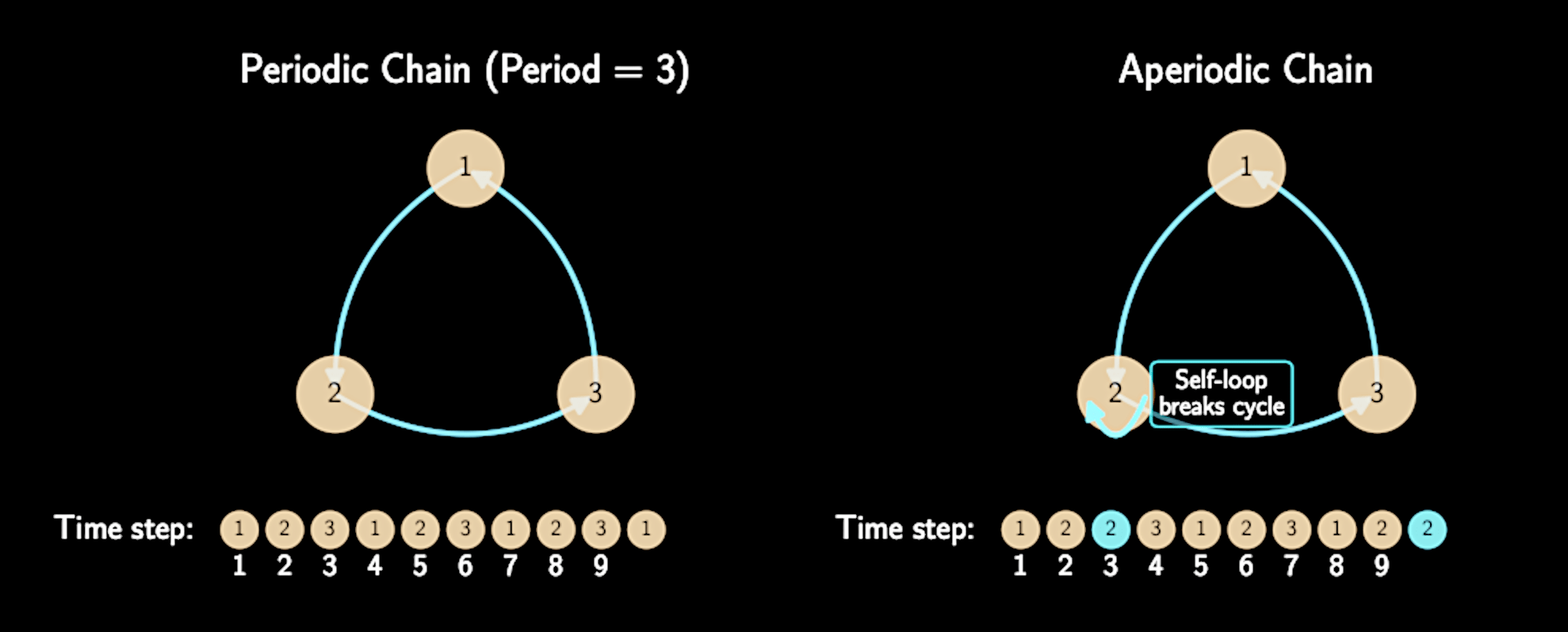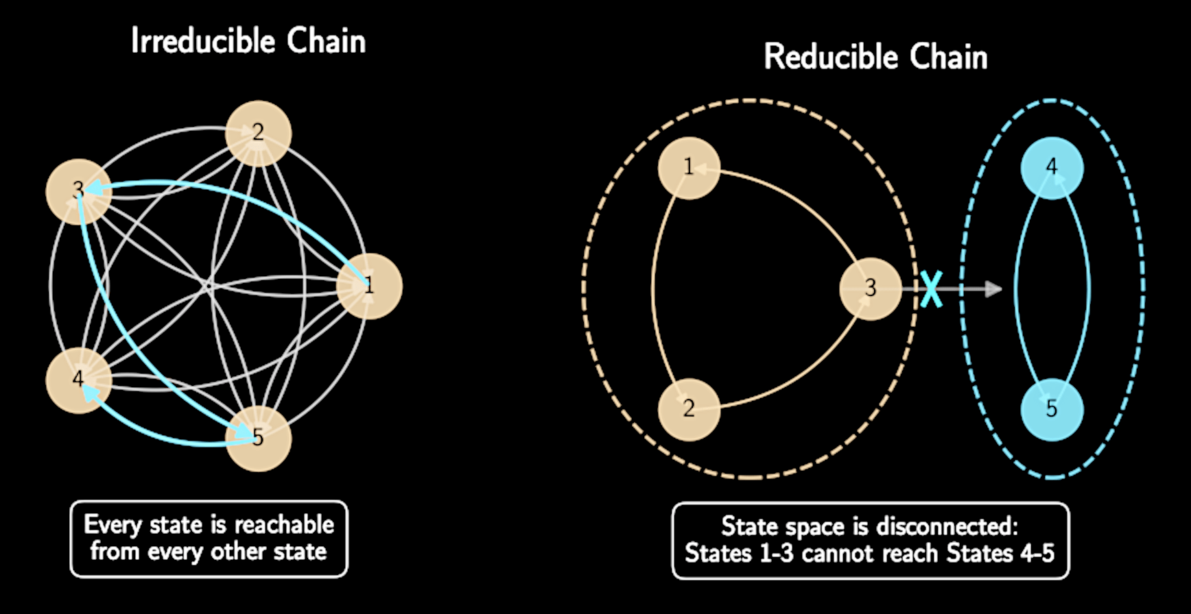 Uniqueness: there's only one stationary distribution our chain can converge to