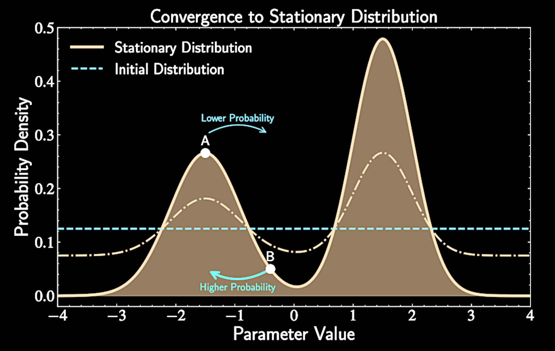 Thus, designing a transition matrix that satisfies detailed balance ensures our posterior is a stationary end point.