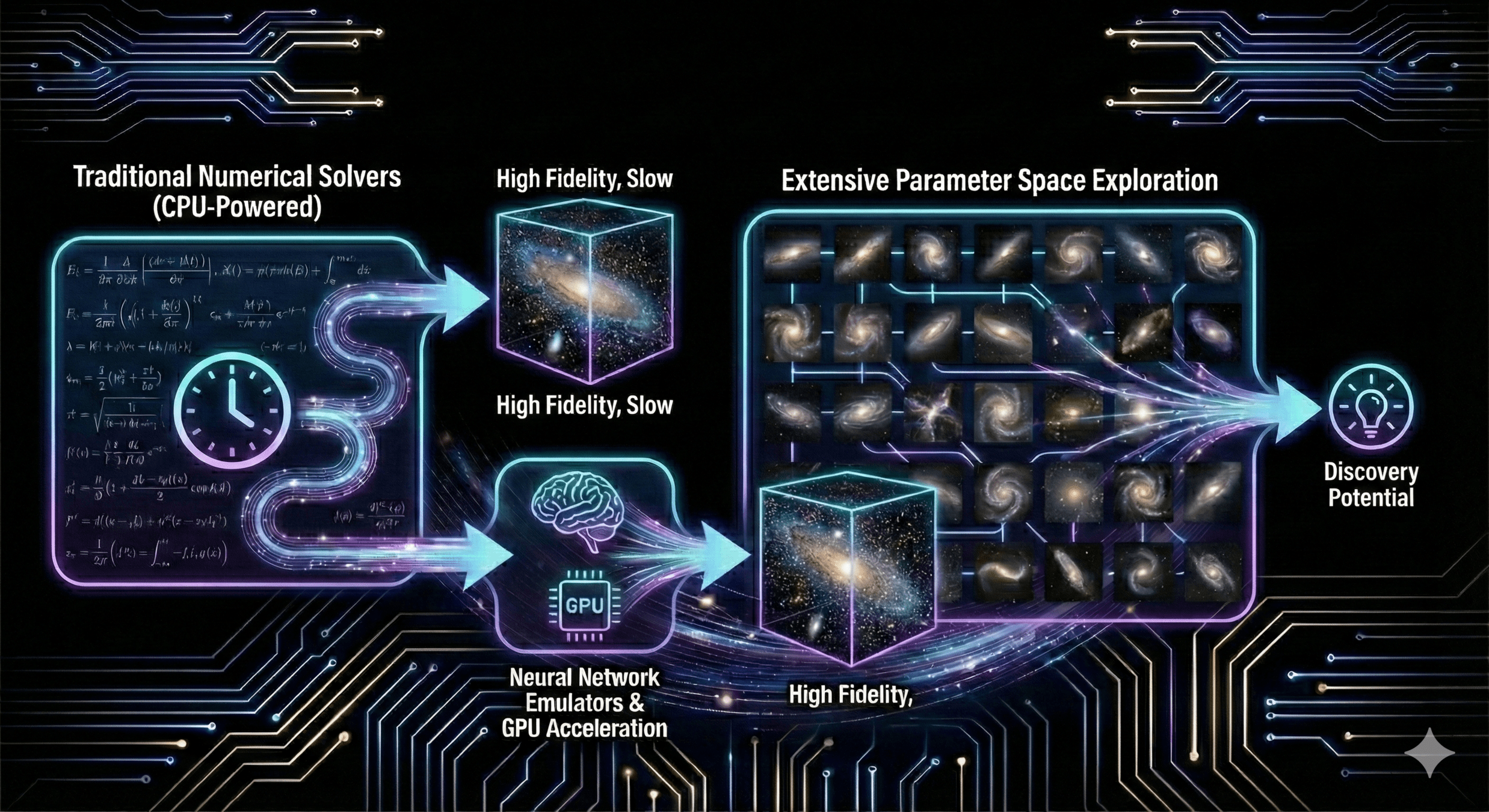 Limited by simulation fidelity when modeling multi-scale processes and exposed to unknown systematics