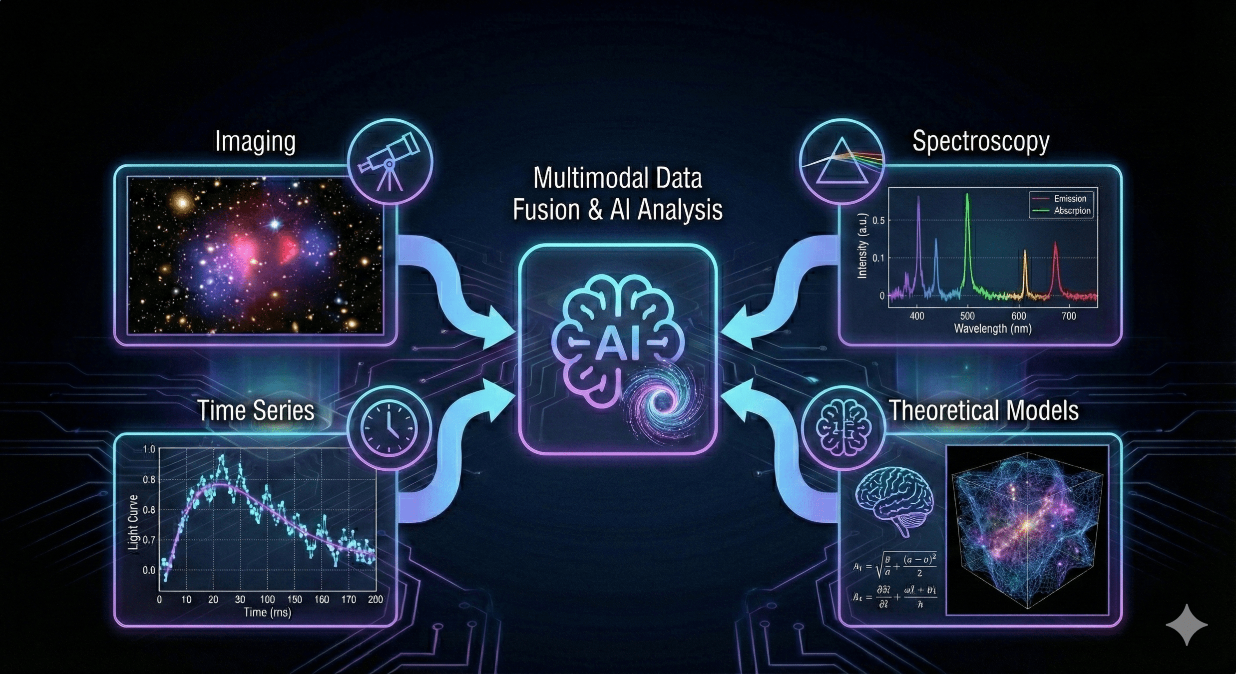 Combines imaging, spectroscopy, time series, and theoretical models