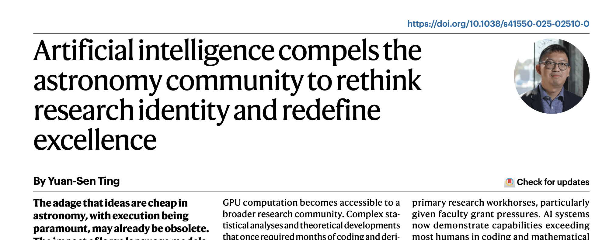 YST, Nature Astronomy, 2025
